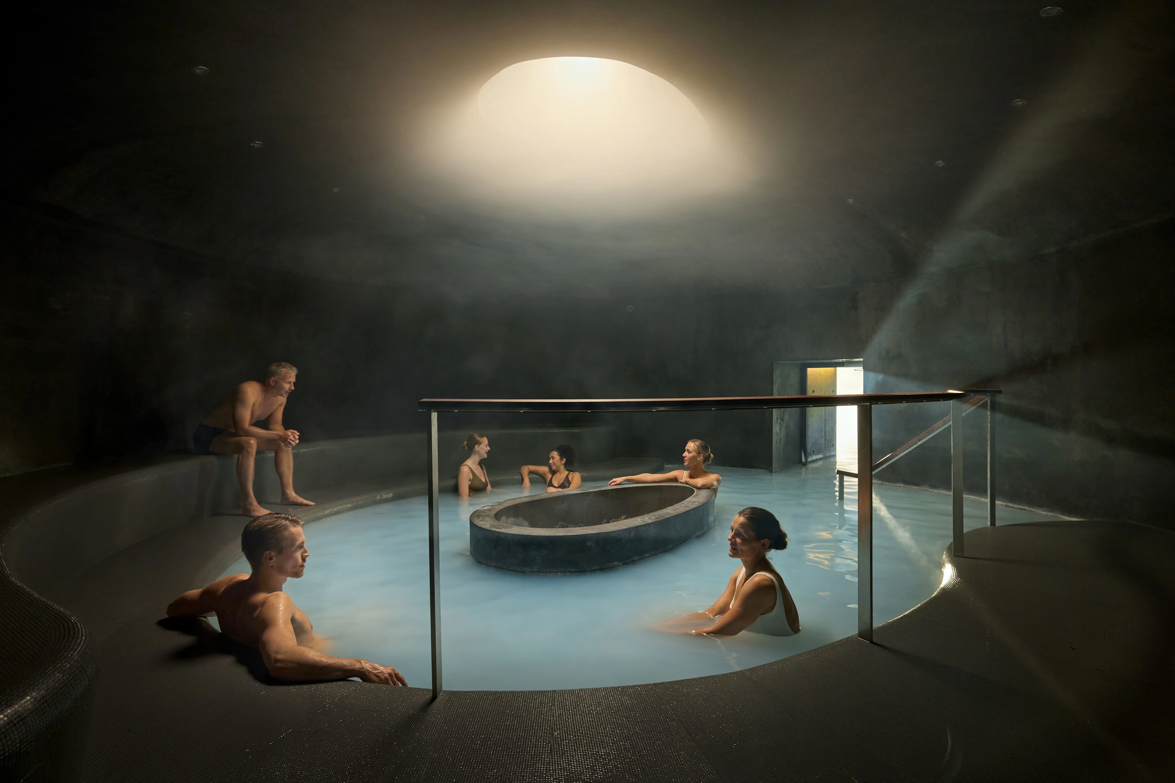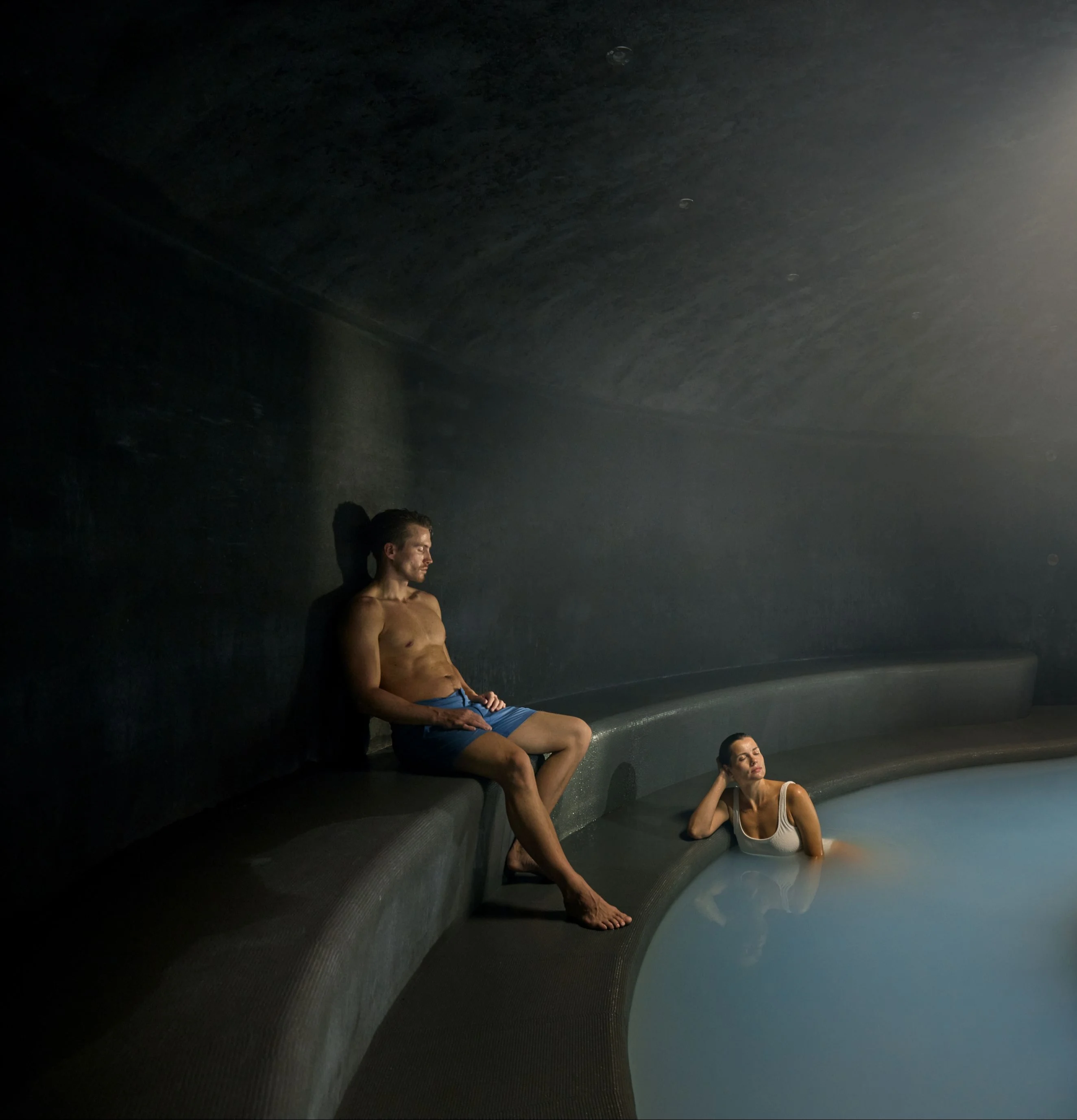 This is a steam room like no other. Enjoy its benefits either submerged in the warm lagoon water, or up on traditional seating platforms encircling the steam source.