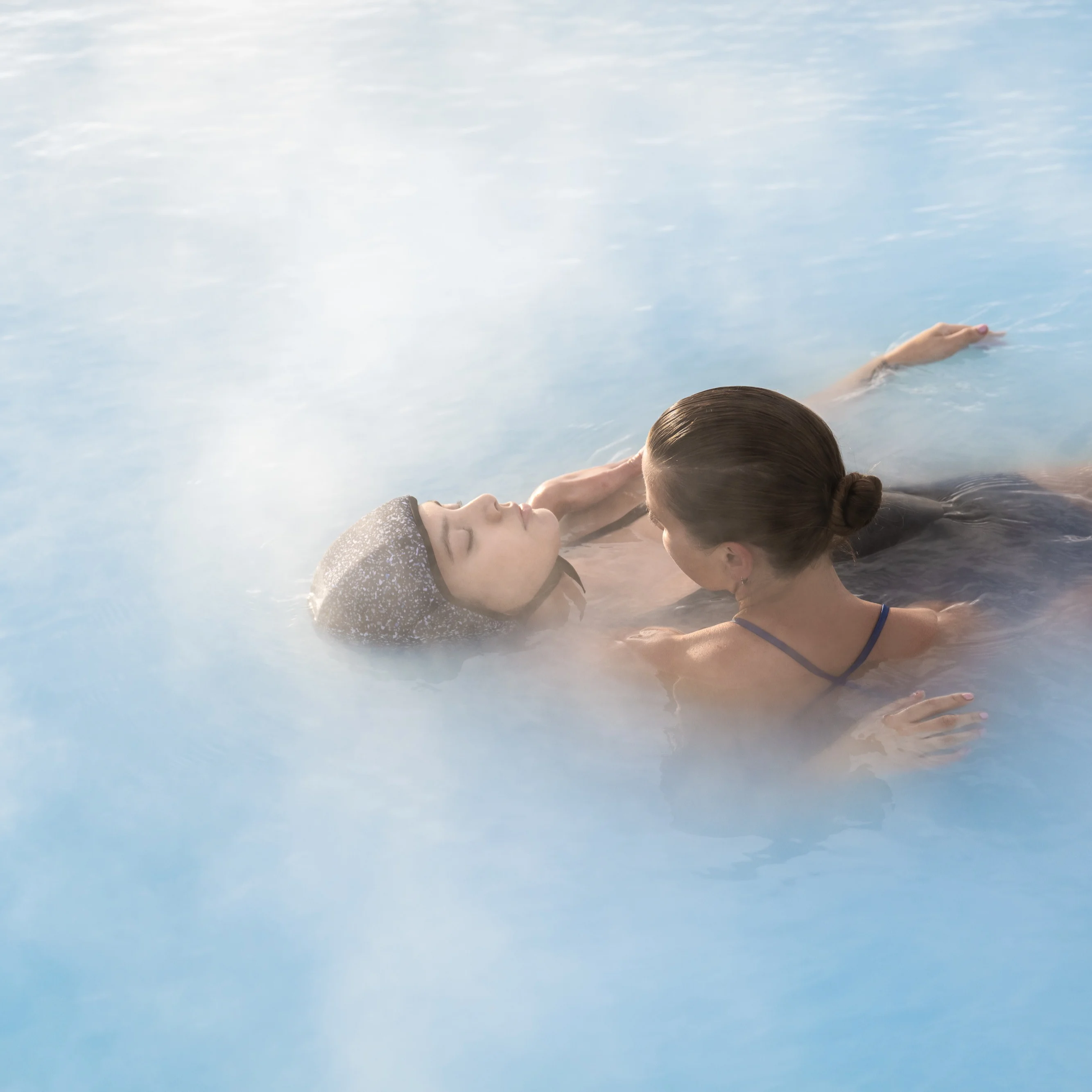 Njóttu þess að fljóta þegar þér hentar með sérstakri útgáfu flotbúnaðar í samstarfi Bláa Lónsins og Flothettu. Mynstrið sem prýðir flothettuna er hönnun Bláa Lónsins og er innblásið af þremur frumefnum lónsins, sem eru kísill, örþörungar og steinefni.